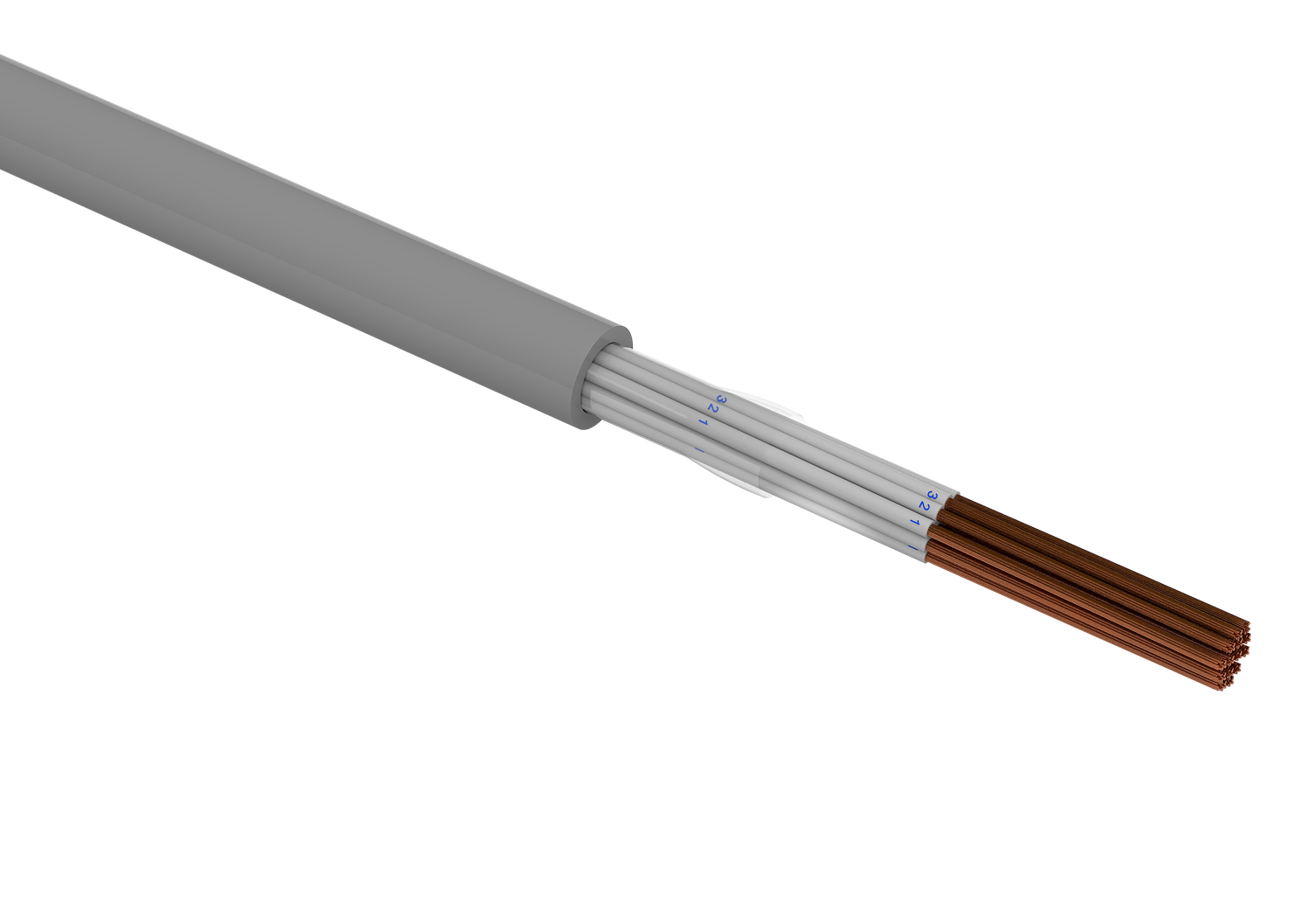 Steuerkabel mit weißen Drähten, nummeriert und mehradrig. Aufbau ohne Schutzleiter. Aderisolation und Außenmantel aus PVC.