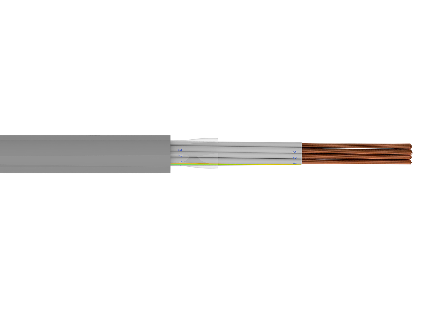 Przewód sterowniczy 300/500V z żyłami białymi, numerowanymi o konstrukcji wielodrutowej. Konstrukcja z żyłą ochronną. Izolacja żył oraz powłoki zewnętrznej wykonana z polwinitu.