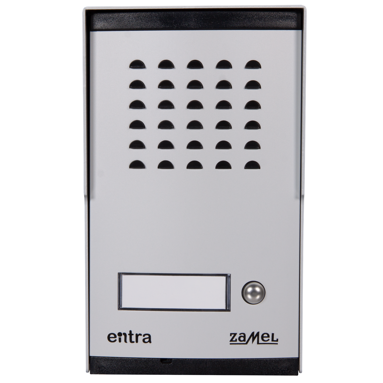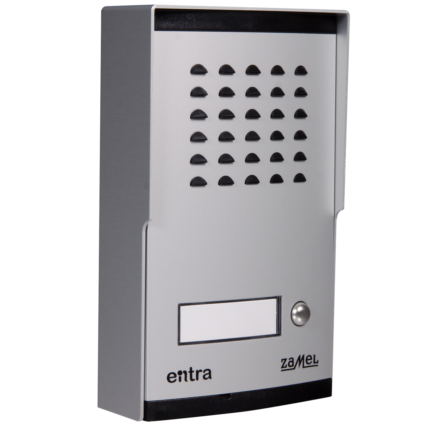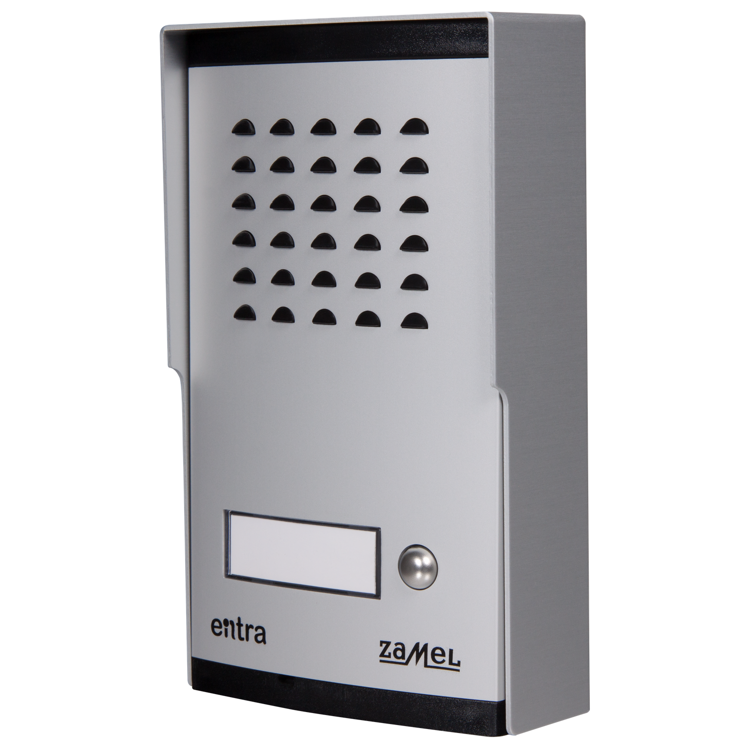 - panel rozmówny wykonany z aluminium, zintegrowany z obudową podtynkową (puszka z tworzywa sztucznego)