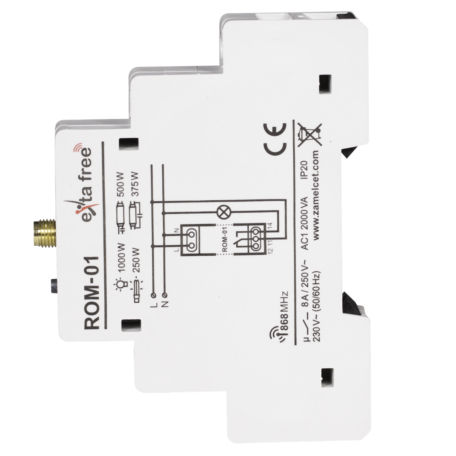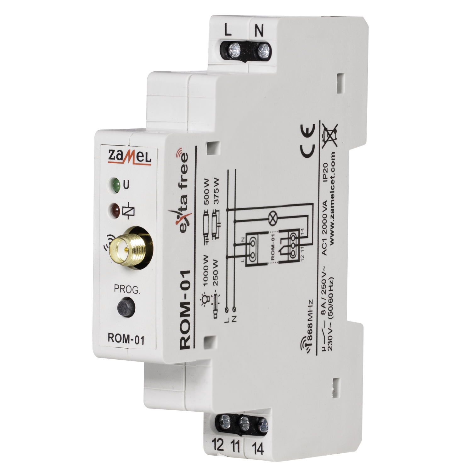Modularen Funkempfänger ROM-01 kann man im Inneren eines herkömmlichen Verteilers an einer DIN-Schiene befestigt werden und über jeden EXTA FREE Sender Funktionen zur Fernsteuerung ausführen. Es ist möglich, an die Relaisausgänge der Empfänger beliebige elektrische Geräte zur Ausführung von Funktionen des Funksystems eingestellt werden (z. B. kabelgebundene EXTA-Geräte , Relais- und Schützsysteme, etc.), anzuschliessen.