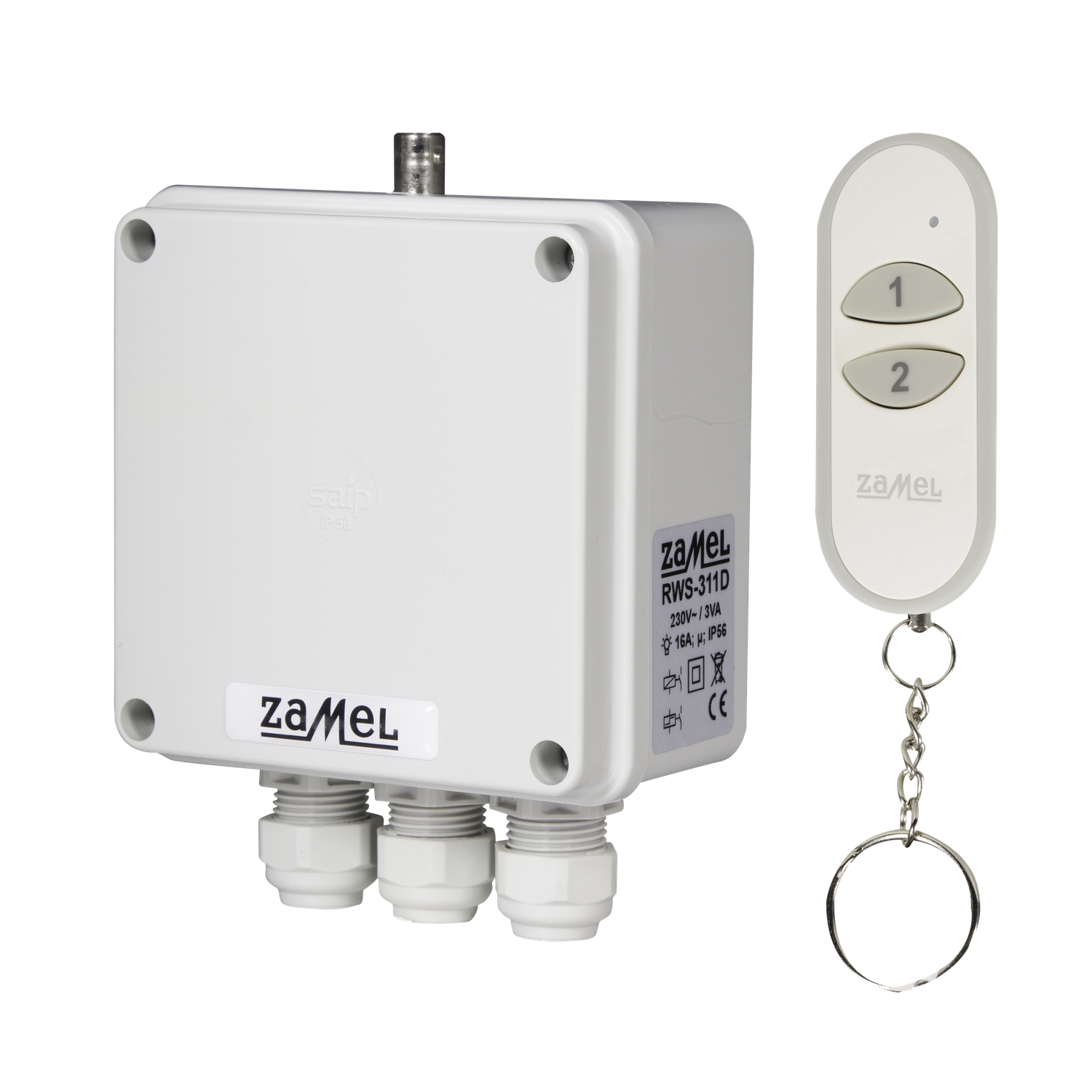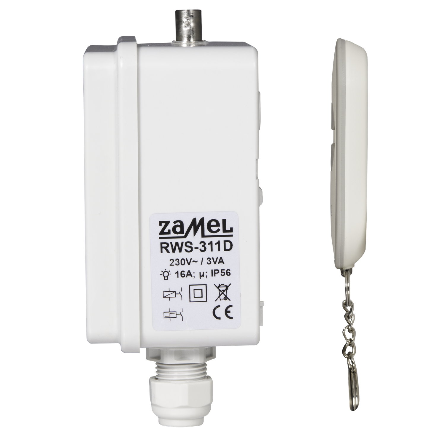 Radiowy wyłącznik sieciowy RWS-311D/Z przeznaczony jest do zdalnego (drogą radiową) sterowania wszelkiego rodzaju urządzeniami elektrycznymi takimi jak: silniki, lampy, napędy bram, pompy, oświetlenie ogrodowe itp. Urządzenie działa w oparciu o protokół zgodny z bezprzewodowym systemem exta free i współpracuje z nadajnikami tego systemu. Do transmisji pomiędzy nadajnikiem a odbiornikiem wykorzystano fale radiowe o częstotliwości 868 MHz. Odbiornik posiada hermetyczną obudowę (IP56), dlatego może być montowany na zewnątrz pomieszczeń i może pracować w trudnych warunkach atmosferycznych. Wyłącznik RWS-311D zasilany jest bezpośrednio z sieci 230 V AC. Posiada dwa wyjścia przekaźnikowe o układzie styków NO. Obciążalność styku przekaźnika to 16 A / 250 V AC 4000 VA AC1. Korzystając z RWS-311D/Z można niezależnie sterować maksymalnie dwoma obwodami elektrycznymi. Współpraca z bezprzewodowym systemem exta free daje bardzo duże możliwości sterowania. W przypadku zestawu RWS-311D/Z w komplecie z wyłącznikiem znajduje się pilot 2-przyciskowy P-257/2. Do odbiornika można przypisać także inne nadajniki (maksymalnie 113).