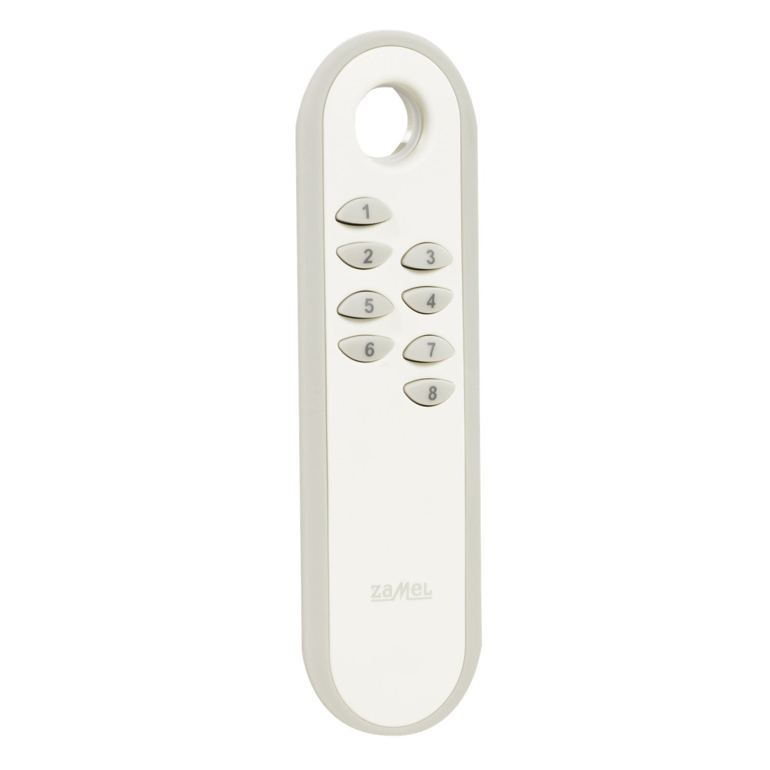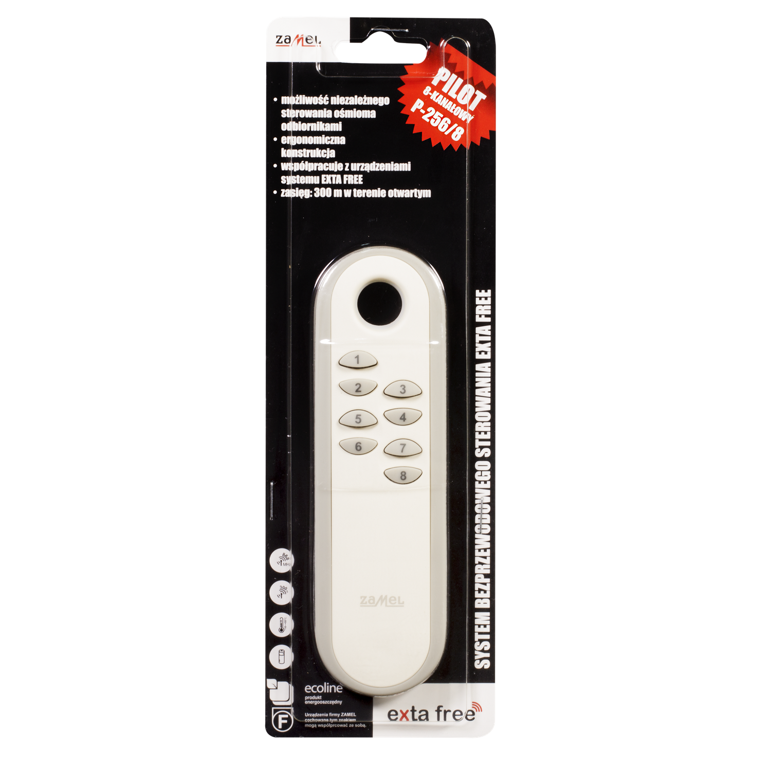 8-Kanal-Fernsteuerung P-256/8 ist ein universeller Sender zur Steuerung von Beleuchtung, RolllädenZufahrts- und Garagentorsystemen usw. Der Sender ist mit hinterleuchteten Komponenten zur Anzeige des Senderbetriebs, einer ergonomischen Gummitastatur und nützlichen kleinen Kettchen zur Befestigung am Schlüssel ausgestattet.
