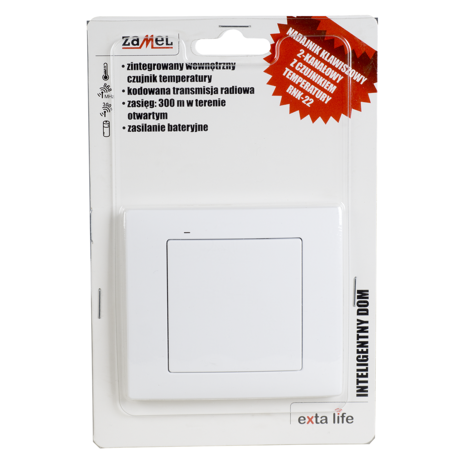 Funksender RNK-22 und RNK-24 sind für Sendung von Steuerungssignalen und für Information von Temperaturwert in EXTA LIFE System geeignet. Man kann damit Ein-/Ausschalten, hellen/dimmen, Rollläden steuern. Information über Temperatur zusammen mit EXTA LIFE Controller ermöglicht eine Steuerung von Heizsystemen. Design ähnlich wie traditionelle Schalter. Keine Kabel (batteriebetrieben) ermöglichen mehrere Anwendungsmöglichkeiten. Sender können an verschiedenen Flächen installiert werden (außer Metall) und in verschiedenen Orten. Mehrere Sender kann man an einen Empfänger programmieren.