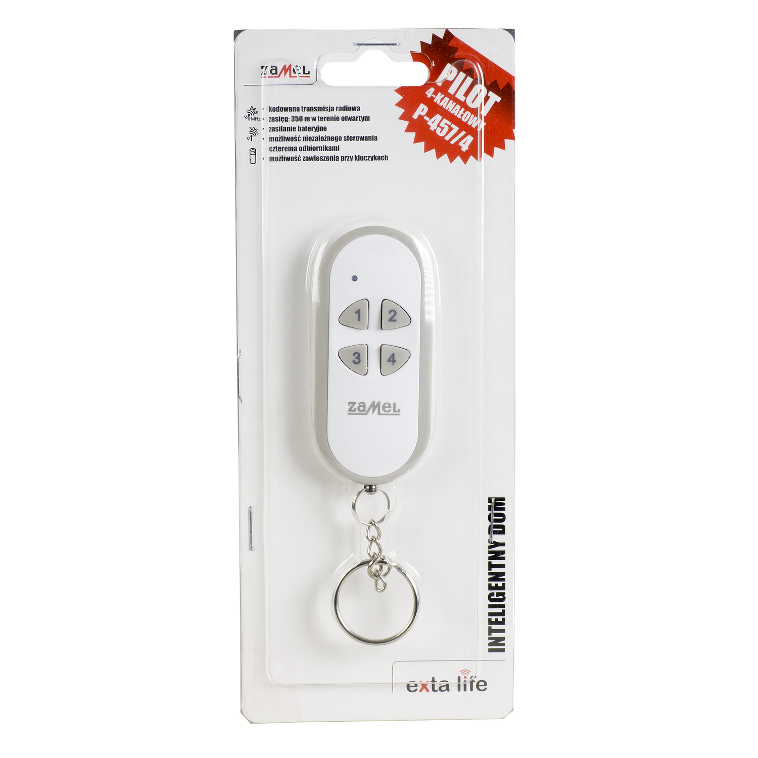 Piloty P-457/2 (2-przyciskowy) oraz P-457/4 (4-przyciskowy) umożliwiają bezprzewodowe sterowanie odbiornikami systemu EXTA LIFE. Znajdują zastosowanie przy zdalnym załączaniu/wyłączaniu oświetlenia, operacjach rozjaśniania/ściemniania oraz przy obsłudze rolet okiennych, bram wjazdowych i garażowych. Zaimplementowany algorytm kodowania ramek zwiększa bezpieczeństwo sterowania. Piloty wyróżniają się niewielkimi wymiarami, ergonomicznym kształtem i atrakcyjnym wyglądem. Wygodne silikonowe przyciski ułatwiają sterowanie. Praktyczny łańcuszek z brelokiem umożliwia montaż pilota na przykład przy kluczykach samochodowych.