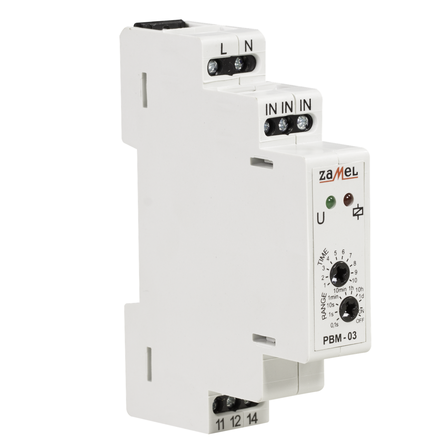 Das bistabile Relais PBM-03 dient zur Steuerung der Beleuchtung oder anderer Geräte über parallel geschaltete unipolare Taster. Das anschließende Drücken einer beliebigen Taste bewirkt das Aktivieren oder Deaktivieren von Geräten, die an die Ausgangsanschlüsse angeschlossen sind. Der Steuerimpuls kann das Signal von der Leitung L oder N. Nach dem Impuls, der den Empfänger aktiviert und dann auf die eingestellte Zeit t wartet, schaltet der Empfänger automatisch ab. Die Verwendung des Systems ermöglicht die Schaffung "intelligenter" Lichtsteuersysteme.