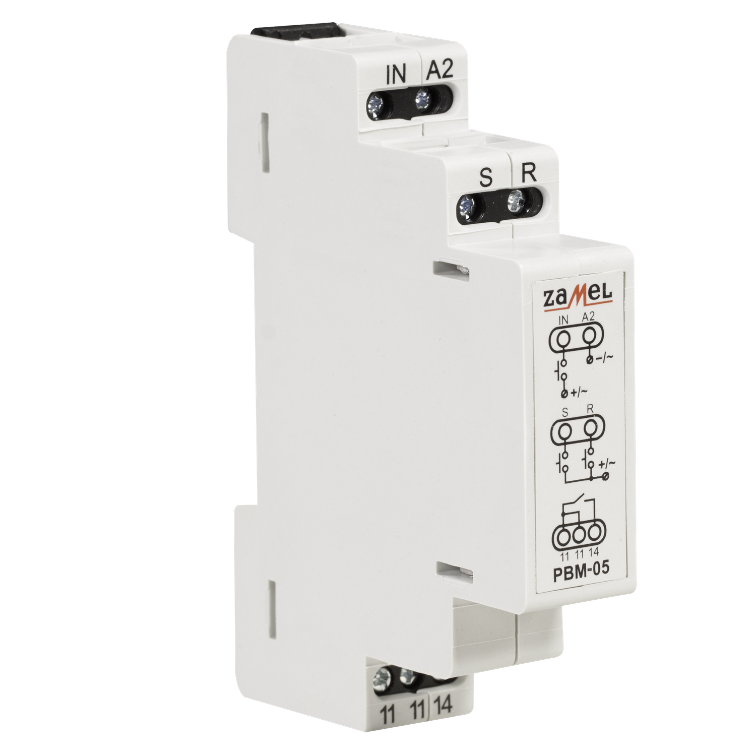Das bistabile Relais PBM-05 / 12-24V dient zur Steuerung der Beleuchtung oder anderer Geräte über parallel geschaltete unipolare Taster. Durch anschließendes Drücken einer beliebigen Taste (die an den Eingang IN angeschlossen ist) wird das an die Ausgangsanschlüsse angeschlossene Gerät ein- oder ausgeschaltet. Die Steuereingänge SET und RESET ermöglichen die zentrale Steuerung einer Relaisgruppe. Nur der Impuls vom Eingang + (Gleichspannung) oder L (Wechselspannung) kann der Steuerimpuls für die Eingänge IN und S und R sein. Das Design des Relais ermöglicht es, sich bei einem Stromausfall an seinen aktuellen Zustand zu erinnern. Ein wichtiges Merkmal des Geräts ist der Nullstromverbrauch.