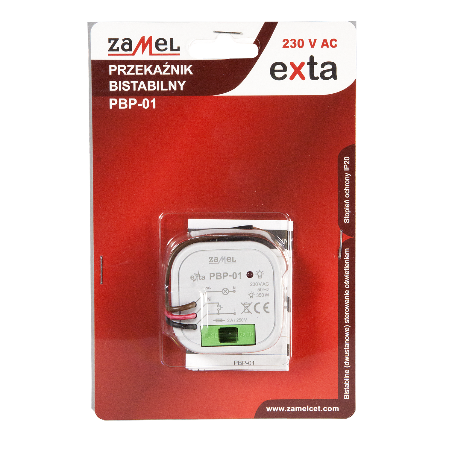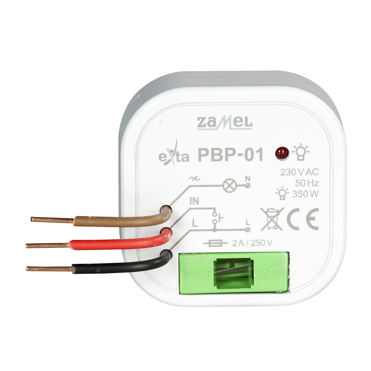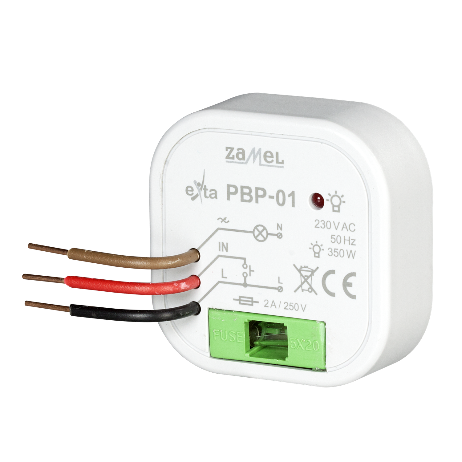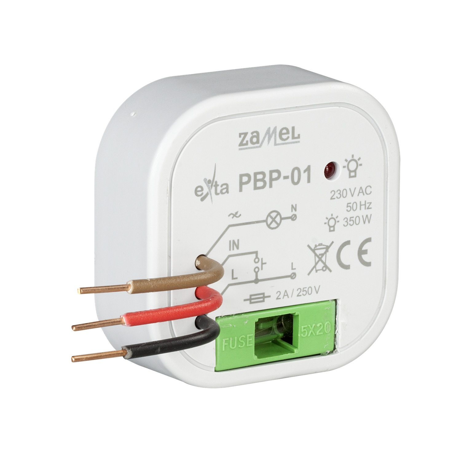Das bistabile Relais PBP-01 dient zur Steuerung der Beleuchtung oder anderer Geräte über parallel geschaltete unipolare Taster. Das anschließende Drücken einer beliebigen Taste bewirkt das Aktivieren oder Deaktivieren von Geräten, die an die Ausgangsanschlüsse angeschlossen sind. Der Steuerimpuls muss ein Signal von der L-Leitung sein.Die Konstruktion des Geräts ermöglicht den Einbau unter einem Schalter in eine tiefe Installationsdose ø60.