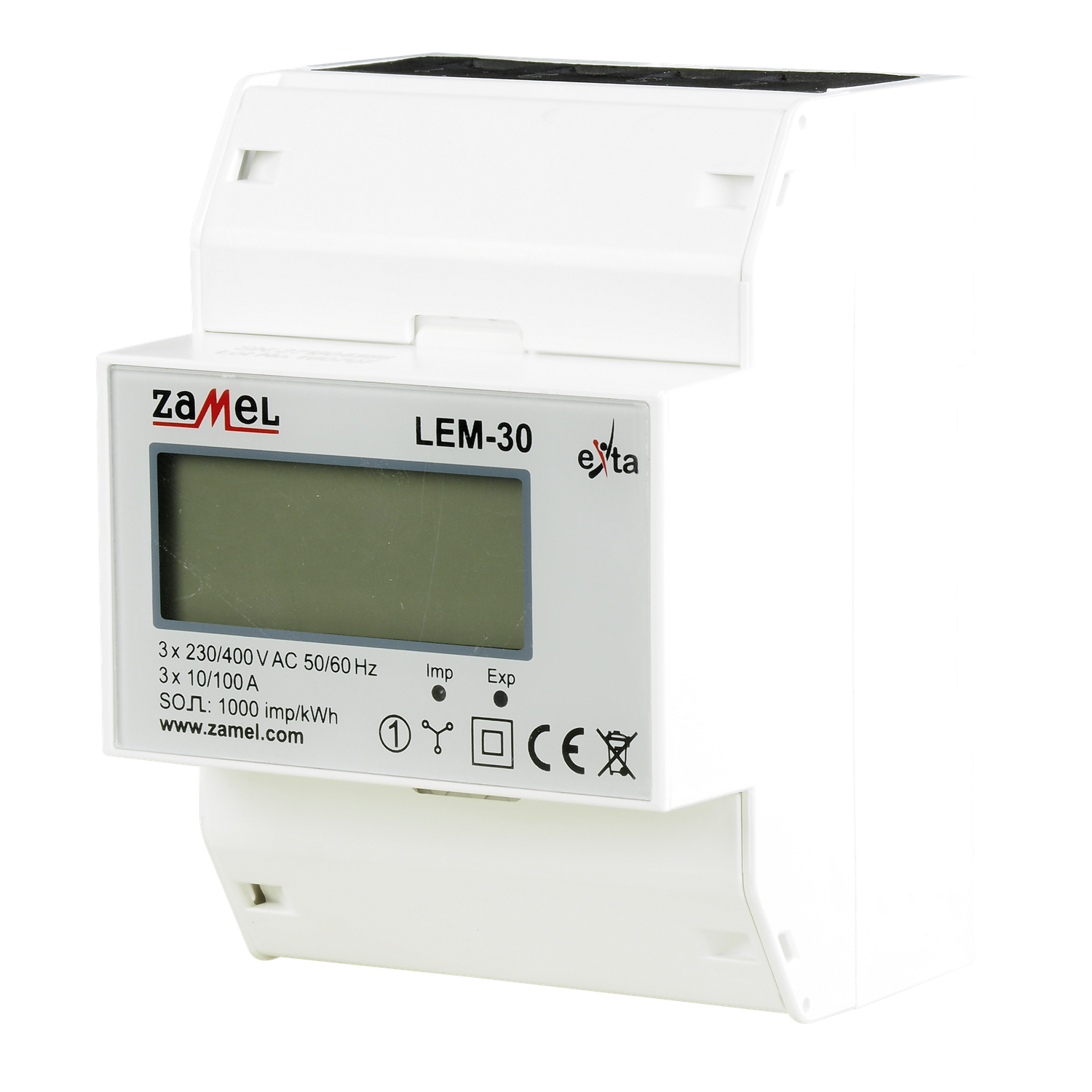 Digitales 3-Phasen-Energiezähler 100 A, 4-Mod Typ: Lem-30
