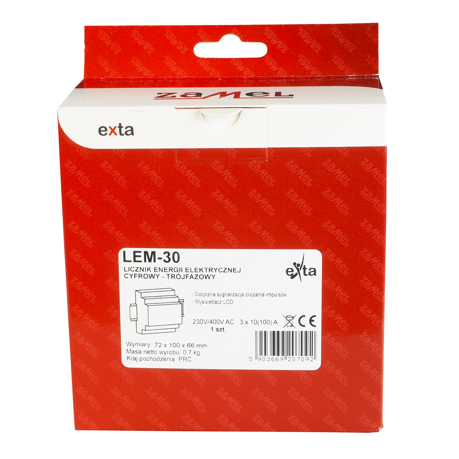 Der LEM-30-Energiezähler mit hintergrundbeleuchtetem LCD-Display dient zur Überwachung vom dreiphasigen Netzstromverbrauchs in gewerblichen und industriellen Anwendungen. Es misst und zeigt die kWh an. Durch die Versorgung des Zählers mit einem zusätzlichen Impulsausgang ist es möglich, ein Zählgerät anzuschließen. Das Messgerät kann problemlos in Schaltschränken montiert oder an eine externe Stromquelle angeschlossen werden.