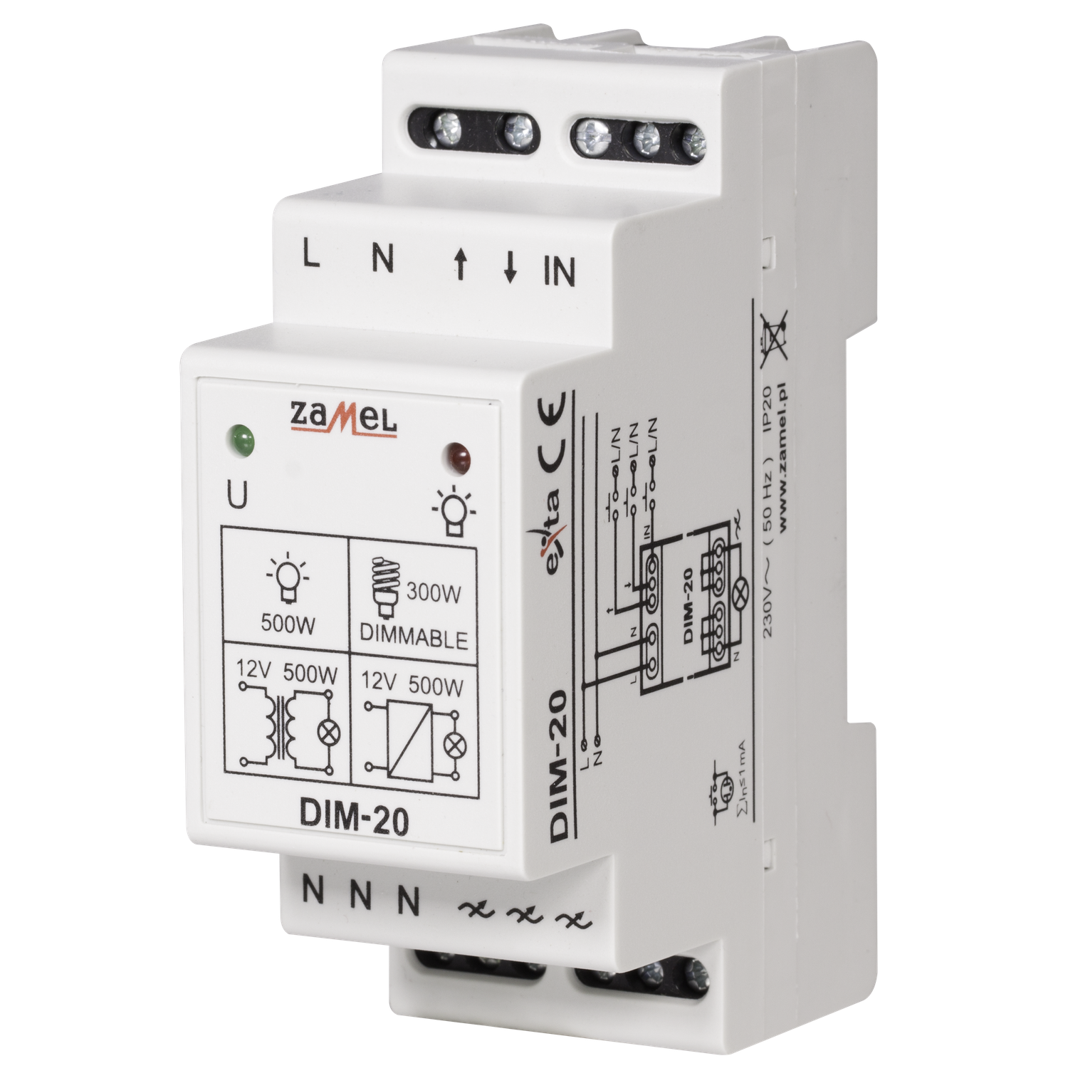 Dimmer DIM-20 dient zur Steuerung von Beleuchtung von verschiedenen Lichtquellen. Steuerung erfolgt über einzelne oder doppelte Spannungskontakte. Die Taster können parallel angeschlossen werden und ermöglichen Steuerung der Beleuchtung von verschiedenen Stellen im Gebäude. Man kann es für Ein-/Ausschalten benuzten oder für stufenloses dimmen/hellen von Beleuchtung.