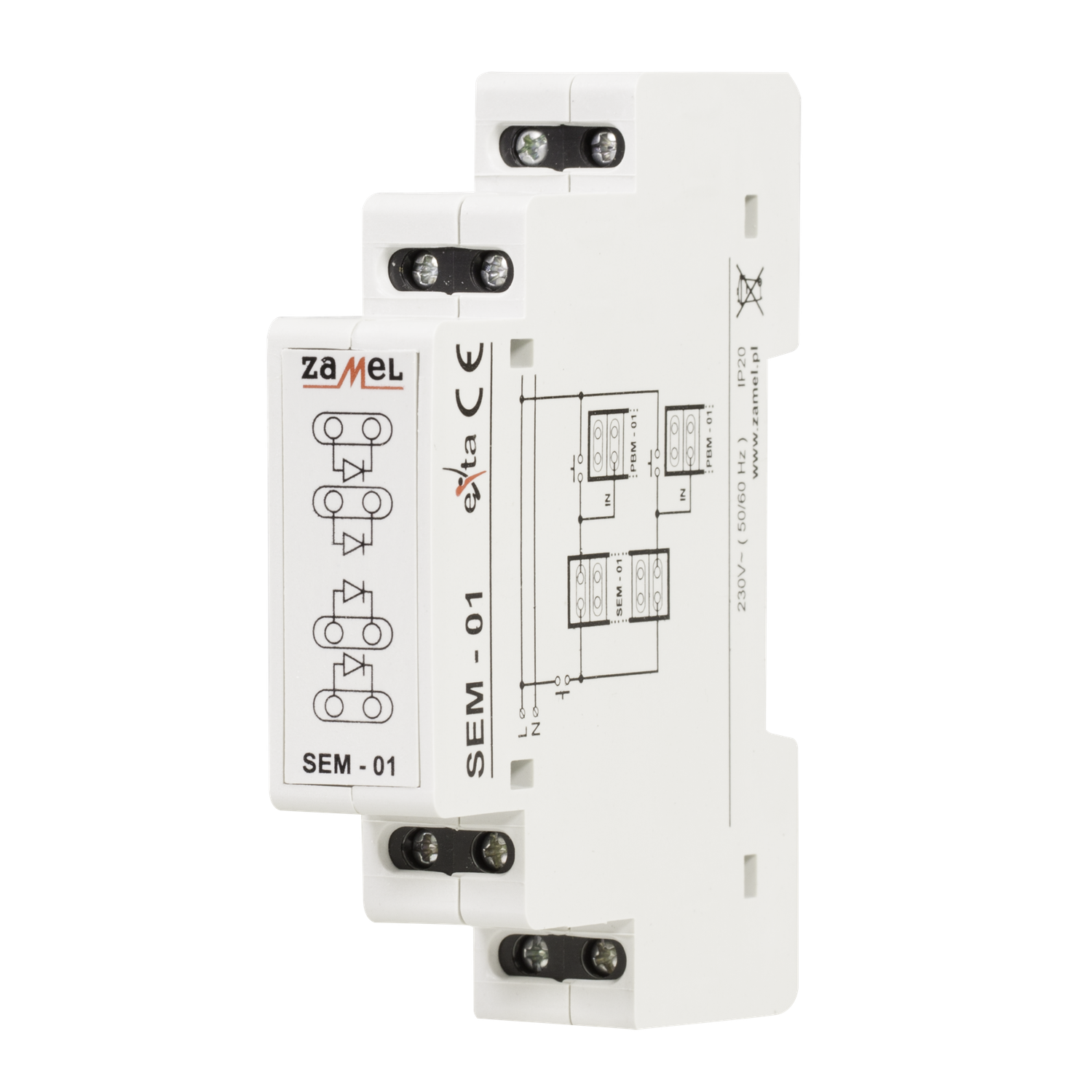 Der SEM-01-Eingangstrenner dient zum Trennen von Steuersignalen in bestimmte Systemgruppen, während der Zugriff auf diese Signale für andere Systeme gesperrt wird. Der Abscheider wird beim Bau von Steuerungssystemen mit EXTA-Gebäudeausrüstung verwendet. Mit Hilfe dieses Systems können wir den Einfluss von Steuersignalen abhängig machen an die Triggereingänge des Systems angeschlossen werden. Der Separator leitet das Signal in eine Richtung weiter, verhindert jedoch, dass sich das Signal in die entgegengesetzte Richtung bewegt. Ein unabhängiges Gehäuse beherbergt 4 unabhängige Trennelemente, die in dem erstellten Steuerungssystem verwendet werden können.