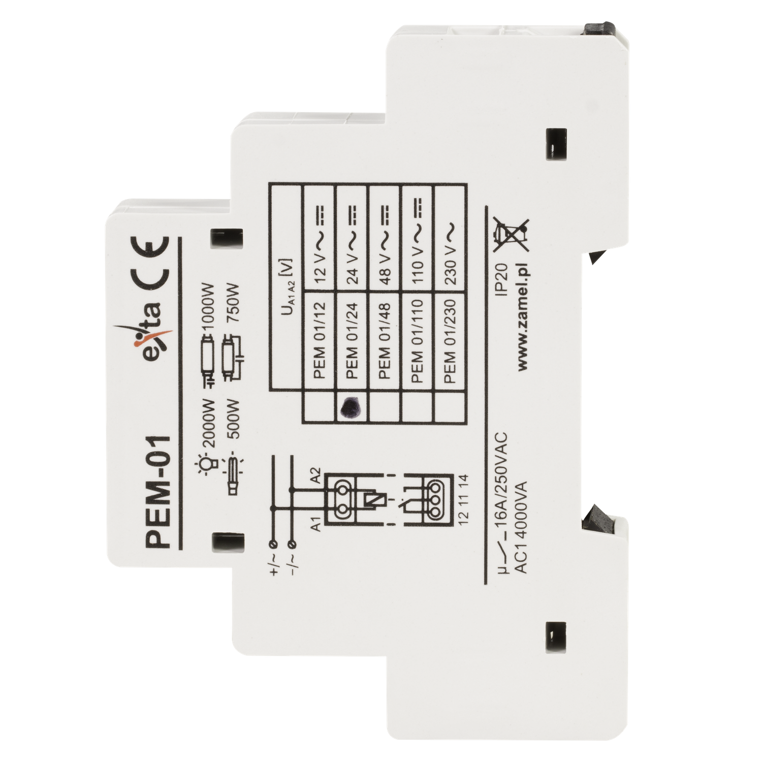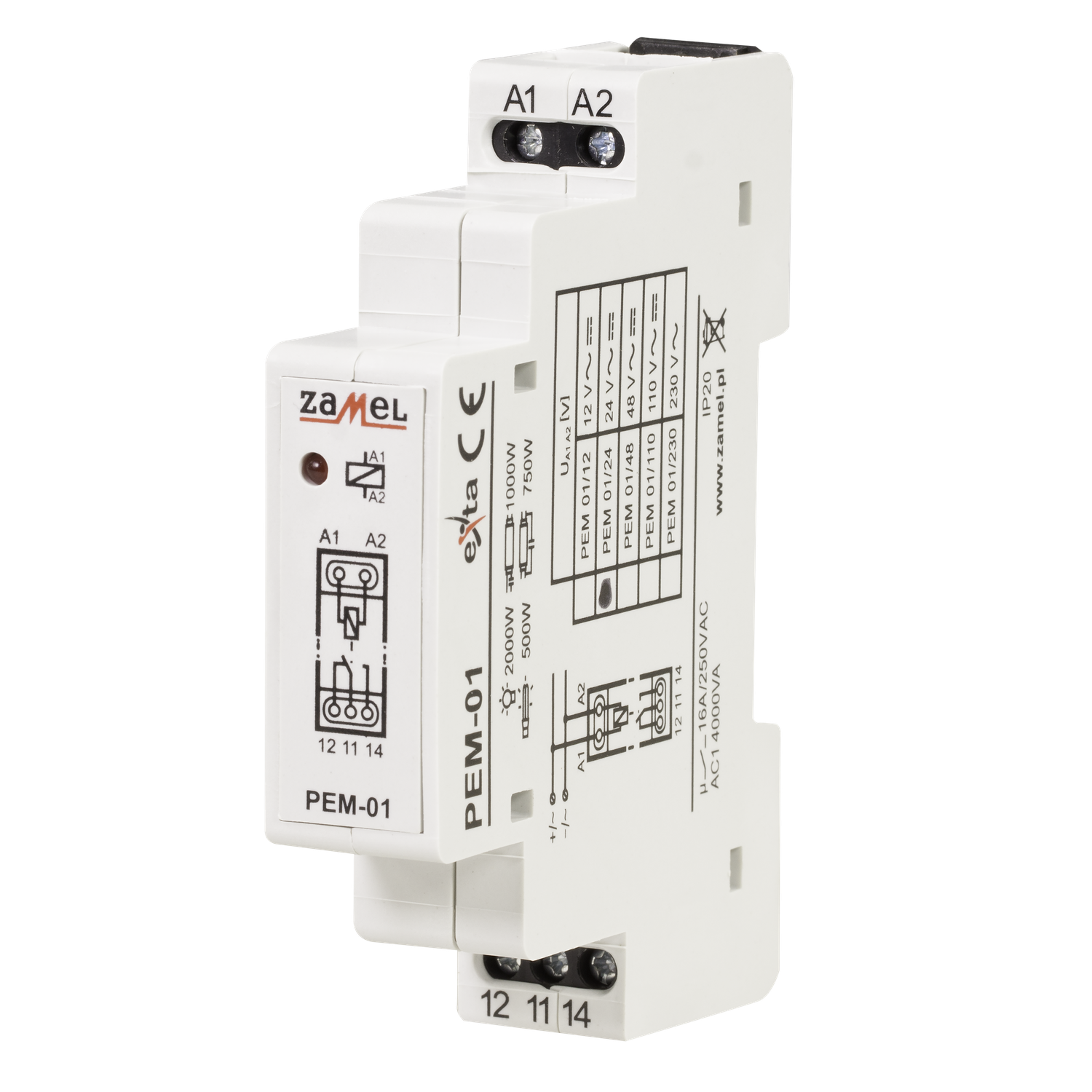- Zusammenarbeit mit Geräten in unterschiedlichen Spannungen: 12 V AC/DC, 24 V AC/DC, 48 V AC/DC, 110 V AC/DC, 230 V AC,