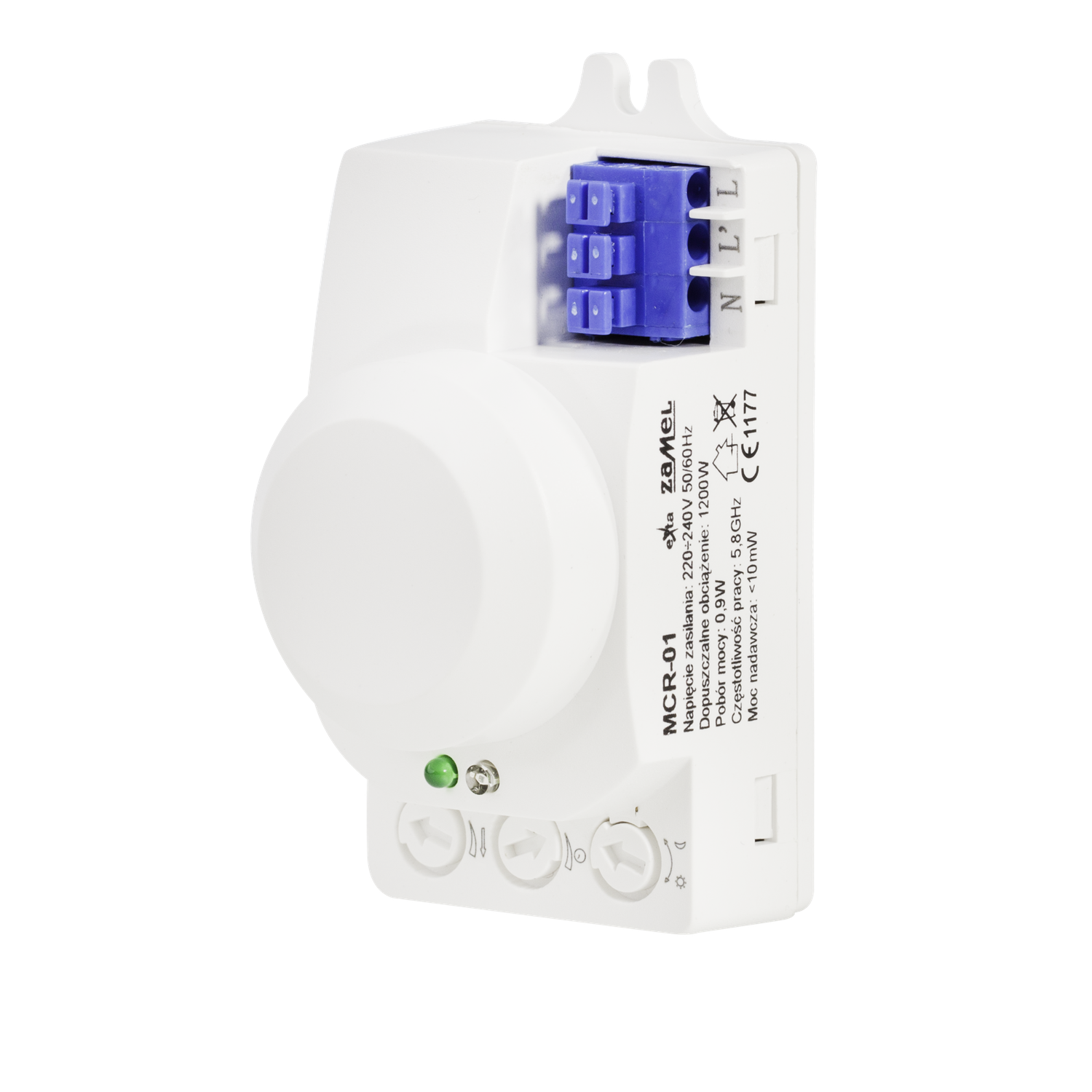 Mikrowellen-Bewegungssensor ist ein aktiver Bewegungsmelder. Eingebauter Sensor sendet elektromagnetische Hochfrequenz-Wellen (5.8 GHz) und empfängt deren Echo. Der Sensor erkennt durch Vervnderungen des Echos selbst kleinste Bewegungen innerhalb des festgelegten Bereichs. Das Gerät verfügt über eine hohe Betriebsfrequenz mit geringer Leistungsaufnahme und gewährleistet eine sehr gute Bewegungserkennung in alle Bewegungsrichtungen (auch durch Tür, Glass, usw.)