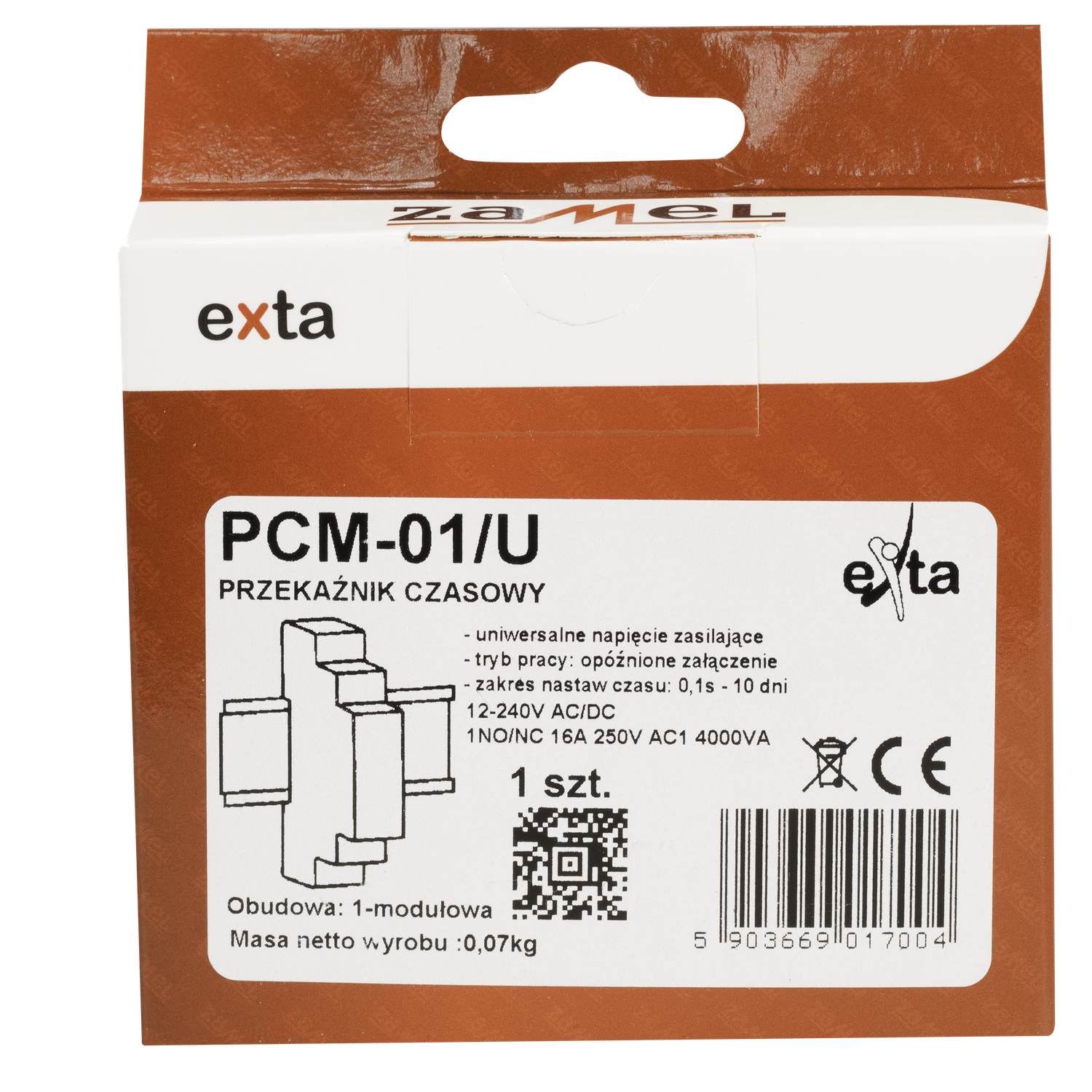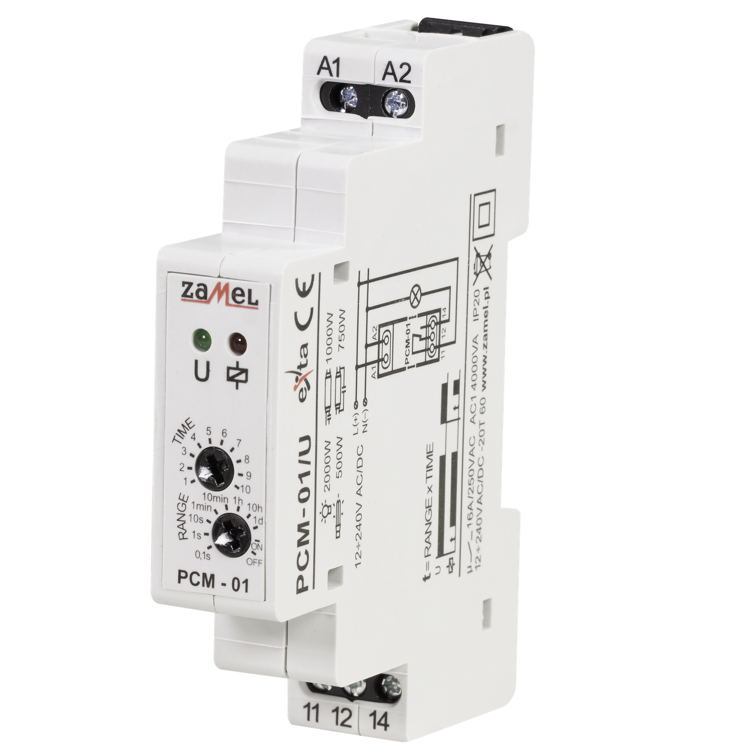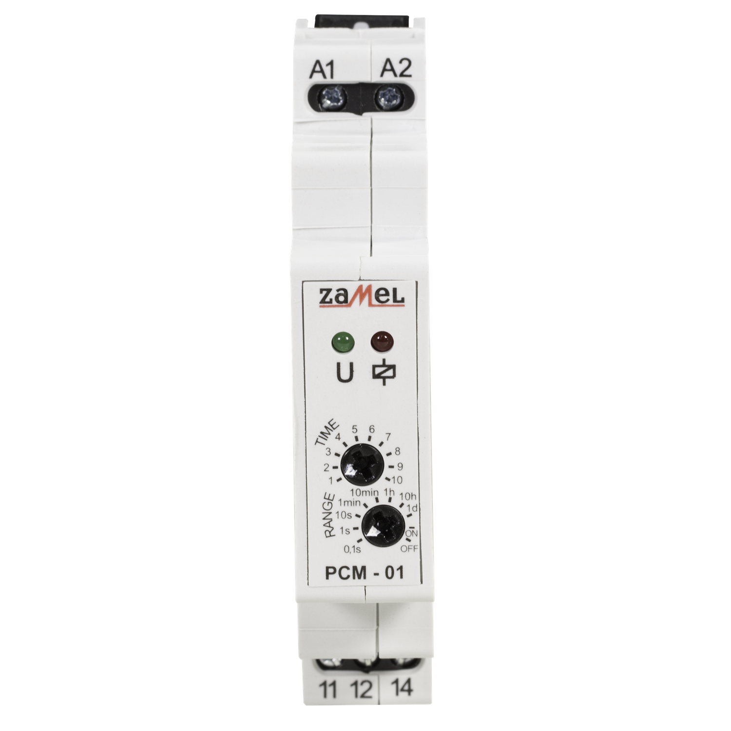 Das einfunktionale Zeitrelais PCM-01 / U dient zur verzögerten Umschaltung (Rückwärts) in Automatisierungs- und Steuerungssystemen. Das Relais wird von der Versorgungsspannung angesteuert. Die Zeiteinstellungen reichen von 0,1 Sekunden bis zu 10 Tagen. Zusätzliche EIN / AUS-Funktionen ermöglichen das dauerhafte Ein- und Ausschalten des Receivers. Das System verfügt über Anzeigen: Versorgungsspannung, Relaisstatus und Timing - über LEDs implementiert.