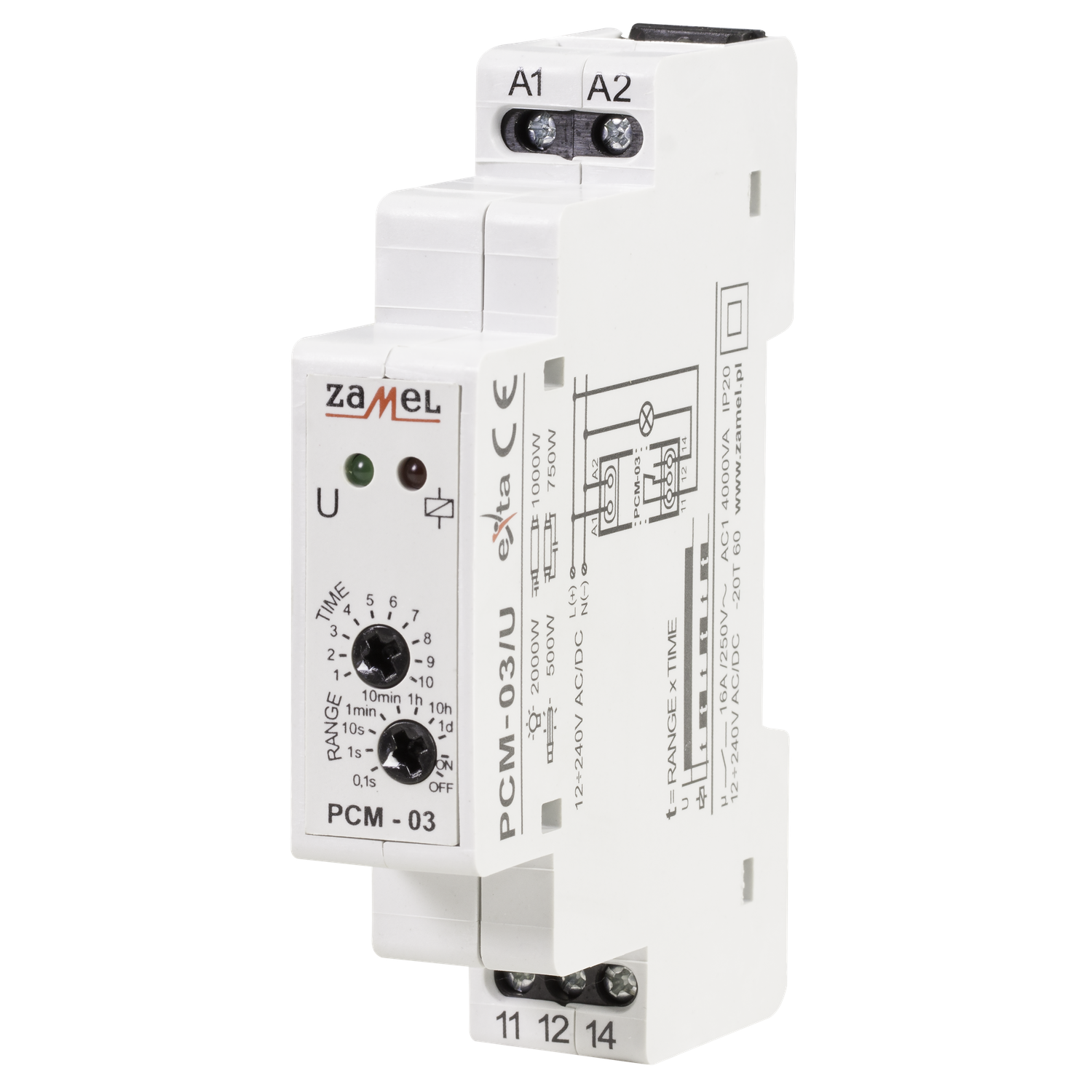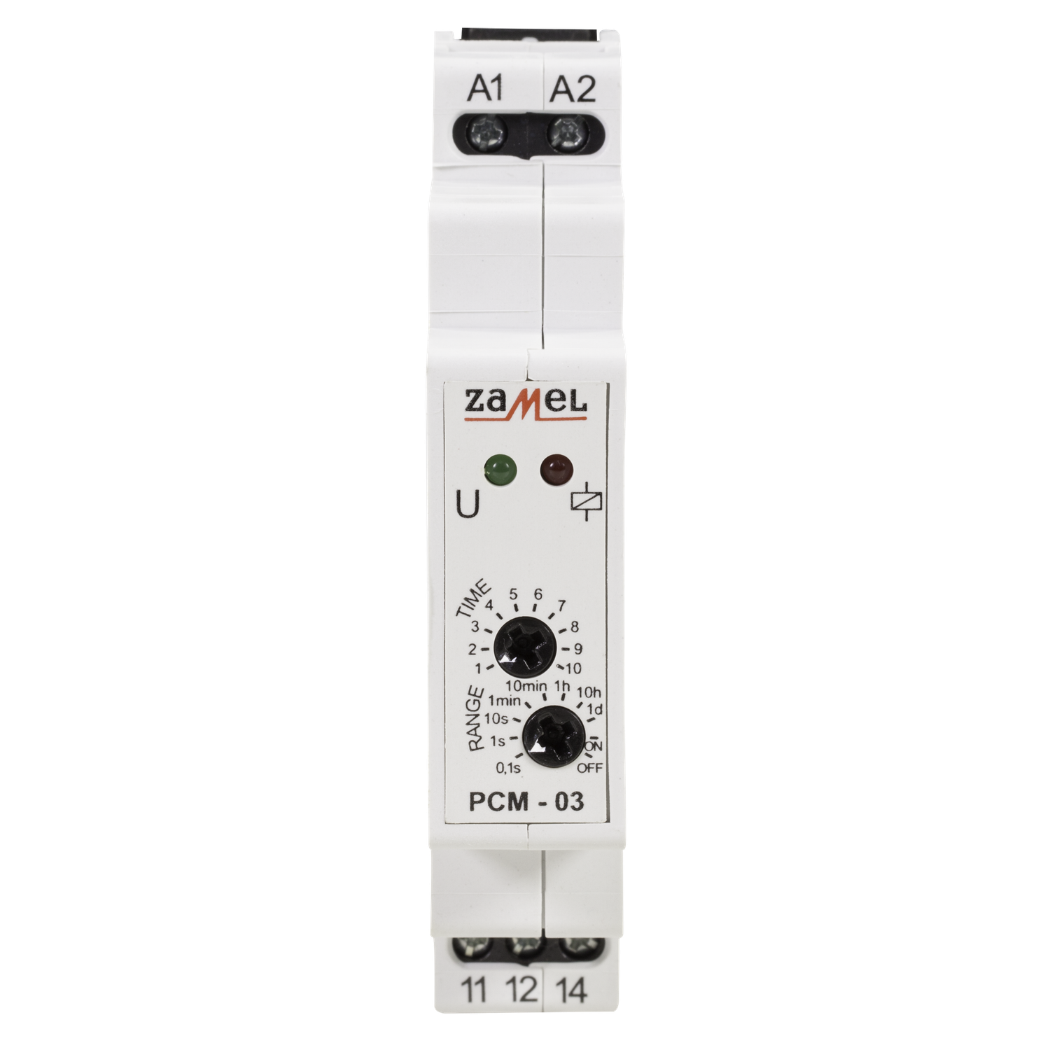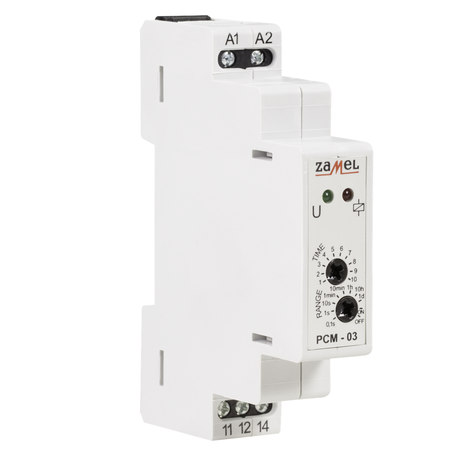 Das Einzelfunktions-Zeitrelais PCM-03 / U übernimmt zyklische Schaltfunktionen in Automatisierungs- und Steuerungssystemen. Das Relais wird von der Versorgungsspannung angesteuert. Die Zeiteinstellungen reichen von 0,1 Sekunden bis zu 10 Tagen. Zusätzliche EIN / AUS-Funktionen ermöglichen das dauerhafte Ein- und Ausschalten des Receivers. Das System verfügt über Anzeigen: Versorgungsspannung, Relaisstatus und Timing - über LEDs implementiert.