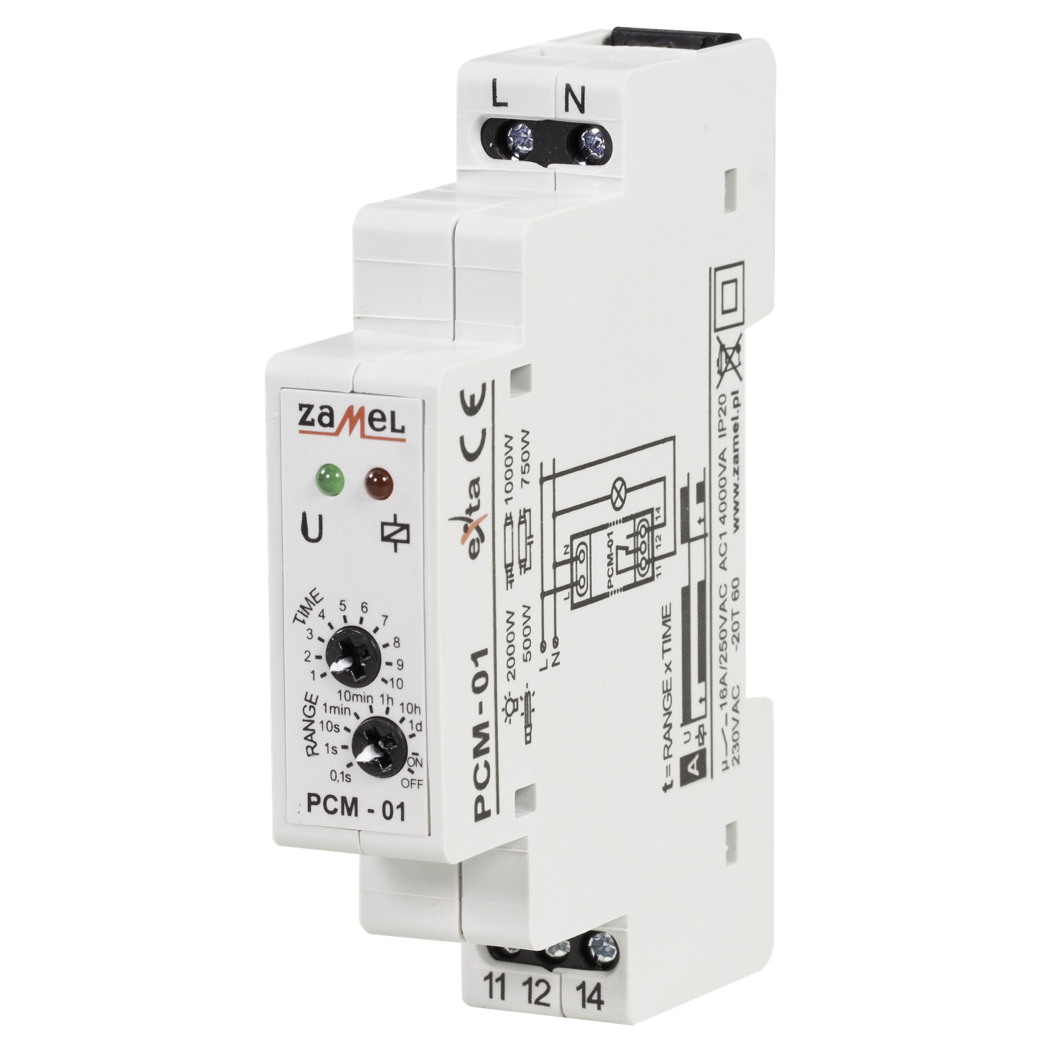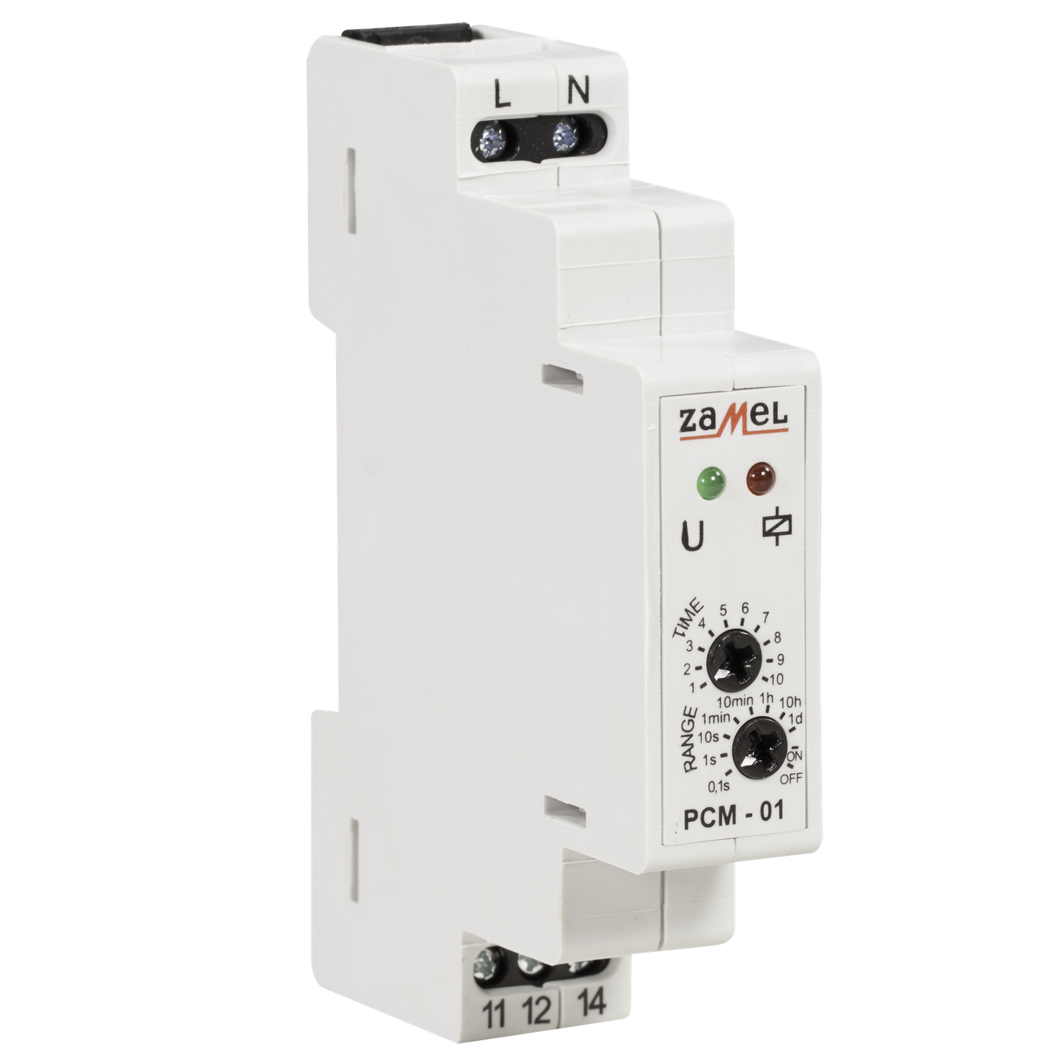 Das einfunktionale Zeitrelais PCM-01 wird für die verzögerte Schaltfunktion (Rückwärts) in Automatisierungs- und Steuerungssystemen verwendet. Das Relais wird von der Versorgungsspannung angesteuert. Die Zeiteinstellungen reichen von 0,1 Sekunden bis zu 10 Tagen. Zusätzliche EIN / AUS-Funktionen ermöglichen das dauerhafte Ein- und Ausschalten des Receivers. Das System verfügt über Anzeigen: Versorgungsspannung, Relaisstatus und Timing - implementiert mit Hilfe von LEDs.