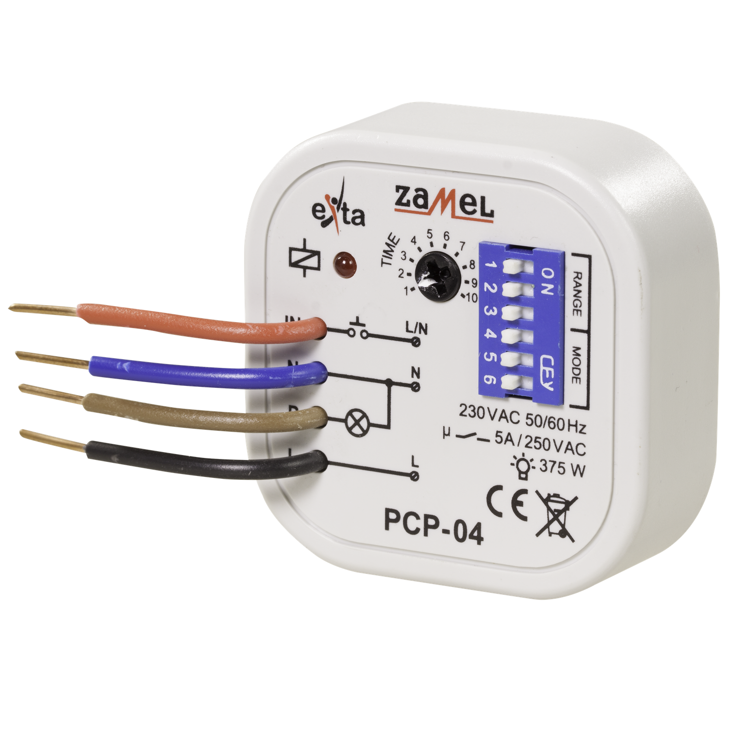 Das multifunktionale Relais PCP-04 dient zur Ausführung von Zeitfunktionen in Automatisierungs- und Steuerungssystemen. Das Relais wird durch die Versorgungsspannung und einen zusätzlichen Steuereingang angesteuert. PCP-04 verfügt über 8 unabhängige Betriebsmodi, die durch Versorgungsspannung oder einen externen Triggerimpuls (von der L- oder N-Leitung) ausgelöst werden. Das Zeitrelais verfügt über eine Vielzahl von Zeiteinstellungen. Das Gerät verfügt über eine Relaisstatusanzeige - die über eine LED realisiert wird. Das Design des Geräts ermöglicht den Einbau in eine ø60 mm Unterputz-Dose.