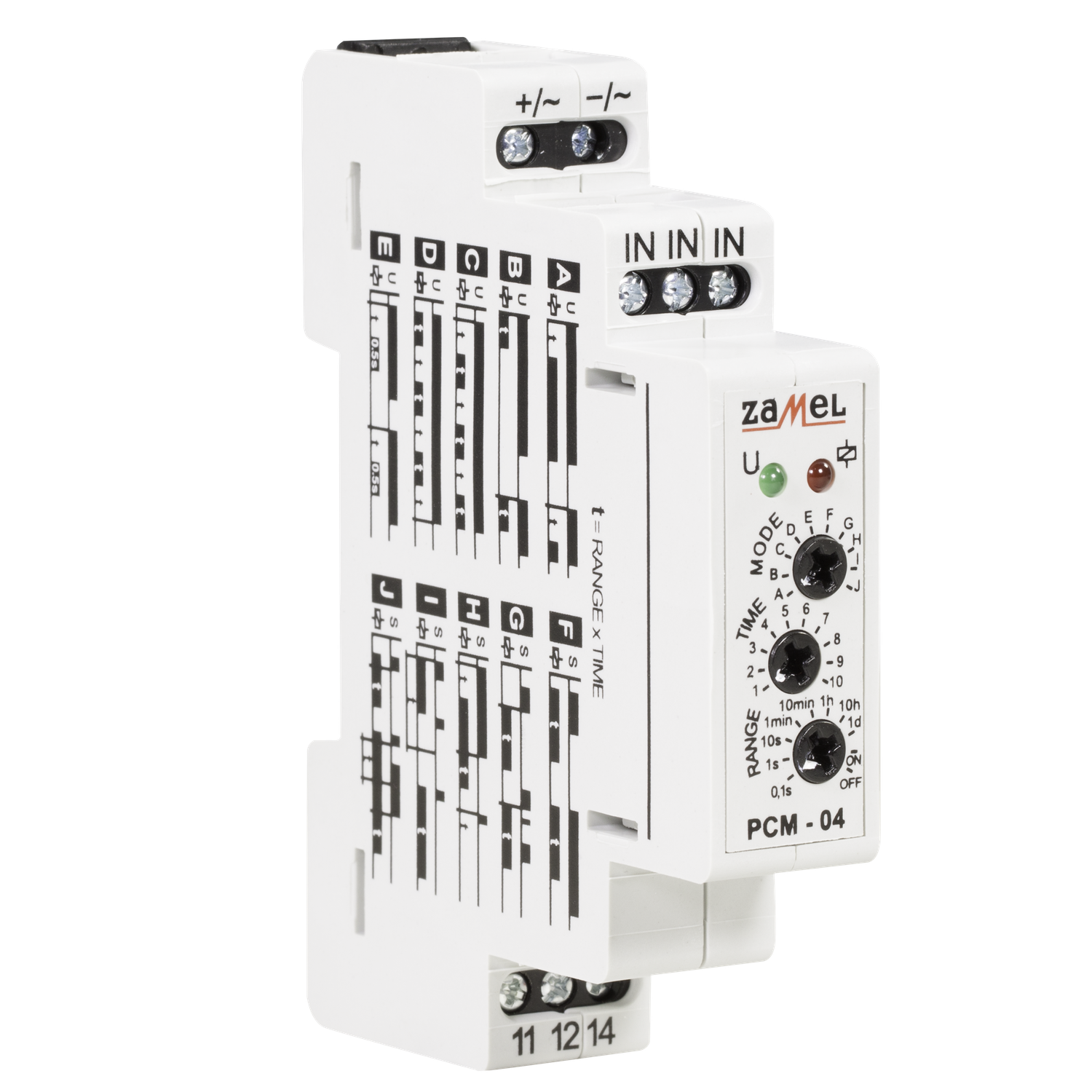 Das multifunktionale Zeitrelais PCM-04 / 24V dient zur Ausführung von Zeitfunktionen in Automatisierungs- und Steuerungssystemen. Es verfügt über 10 unabhängige Betriebsarten, die durch Versorgungsspannung oder einen externen Triggerimpuls (von der L- oder N-Leitung) ausgelöst werden. Es hat eine sehr große Auswahl an Zeiteinstellungen und Funktionen zum konstanten Ein- und Ausschalten. Sie können den Modus ändern, ohne auf den Abschluss des aktuellen Zyklus warten zu müssen.