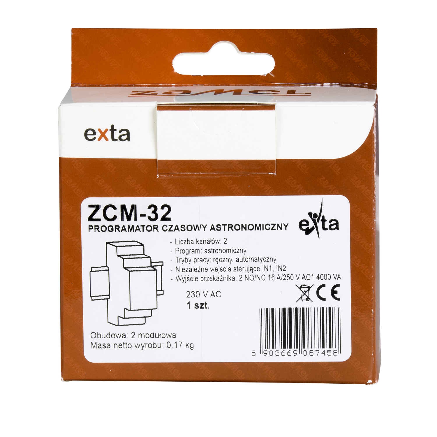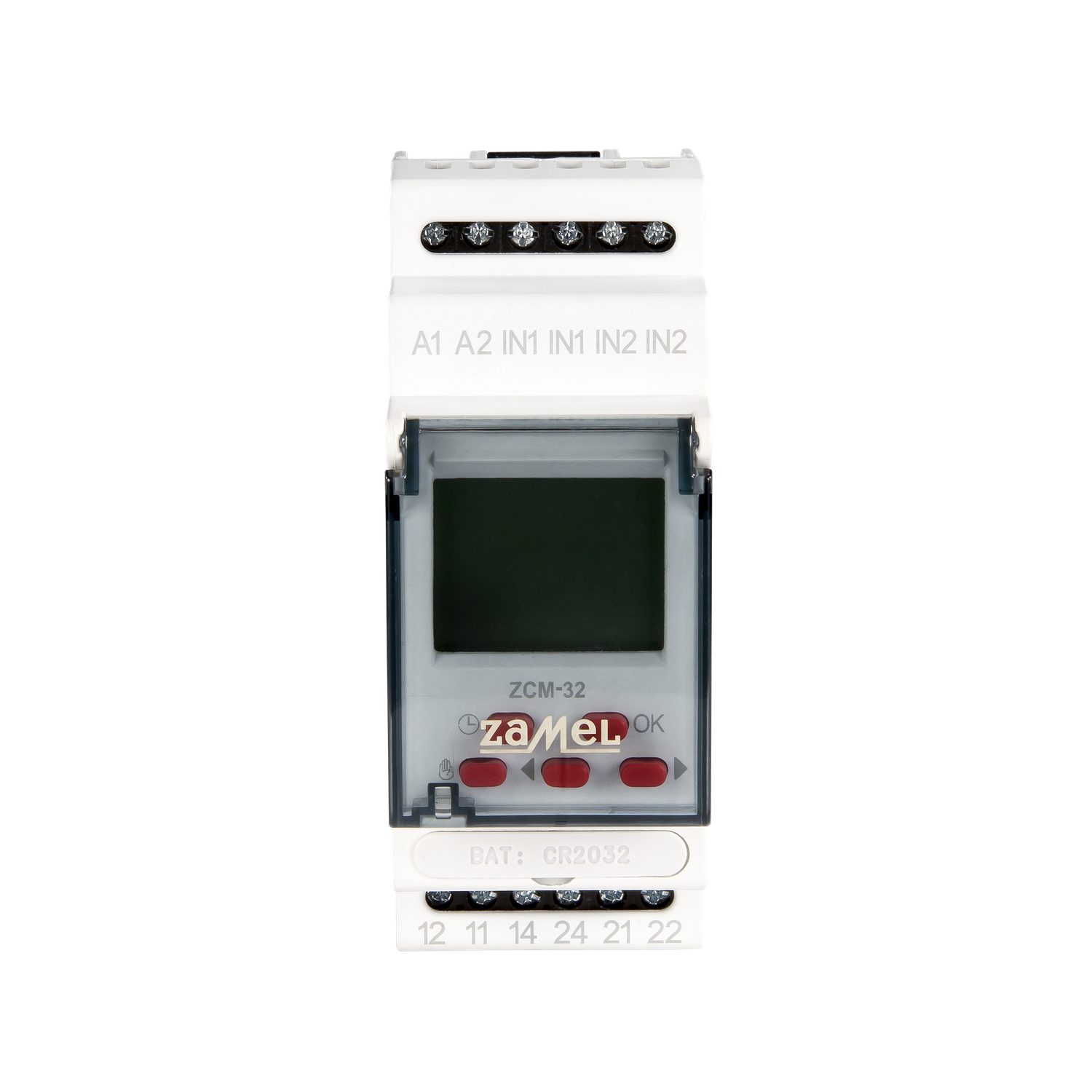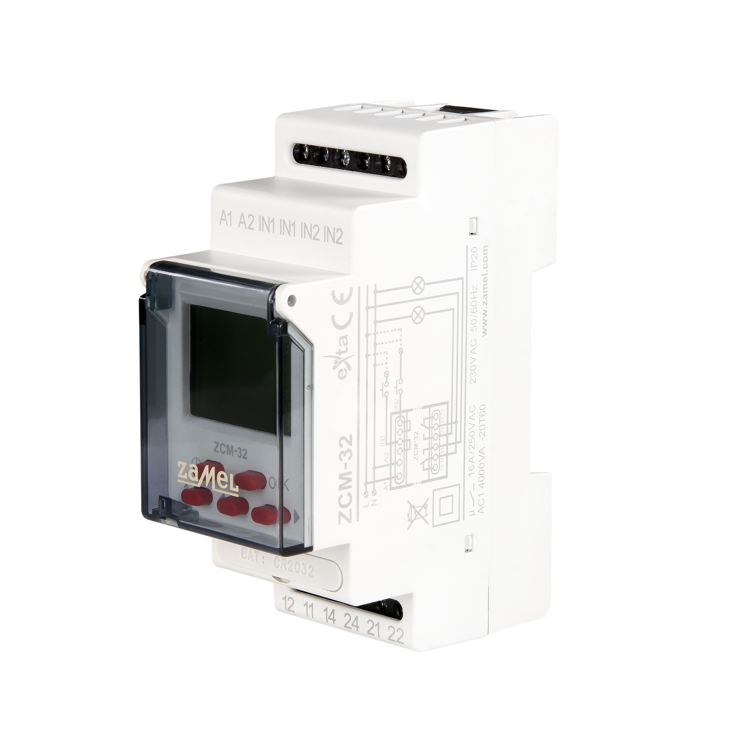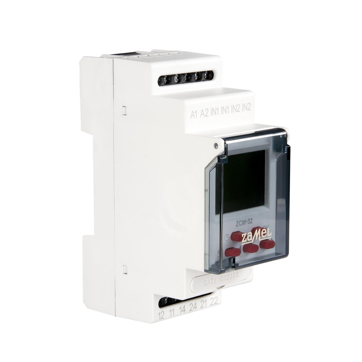 Die digitalen Zeitschaltuhren der Serie ZCM-32 werden zur Ausführung von Zeitfunktionen in Automatisierungs- und Kontrollsystemen verwendet. Das Ein- und Ausschalten des Geräts ist mit Sonnenauf- und -untergang (offizielle Morgen- und Abenddämmerung) verbunden Die Berechnung der Sonnenaufgangs- und Sonnenuntergangszeit verwendet Informationen über die geografischen Koordinaten des Aufstellungsortes der Uhr, das aktuelle Datum und den Versatz von der Weltzeit. Das System verfügt über zwei unabhängige Kanäle (Ausgänge). Die Funktion der Nachtpause und des Versatzes der berechneten Sonnenaufgangs- / Sonnenuntergangszeit innerhalb von ± 120 Minuten kann für jeden Kanal programmiert werden. Die Gehäusekonstruktion ermöglicht Montage auf einer DIN-Schiene und eventuelle Verplombung des Geräts. Das Design des Geräts garantiert eine Batteriesicherung aller Einstellungen bei fehlender Stromversorgung.