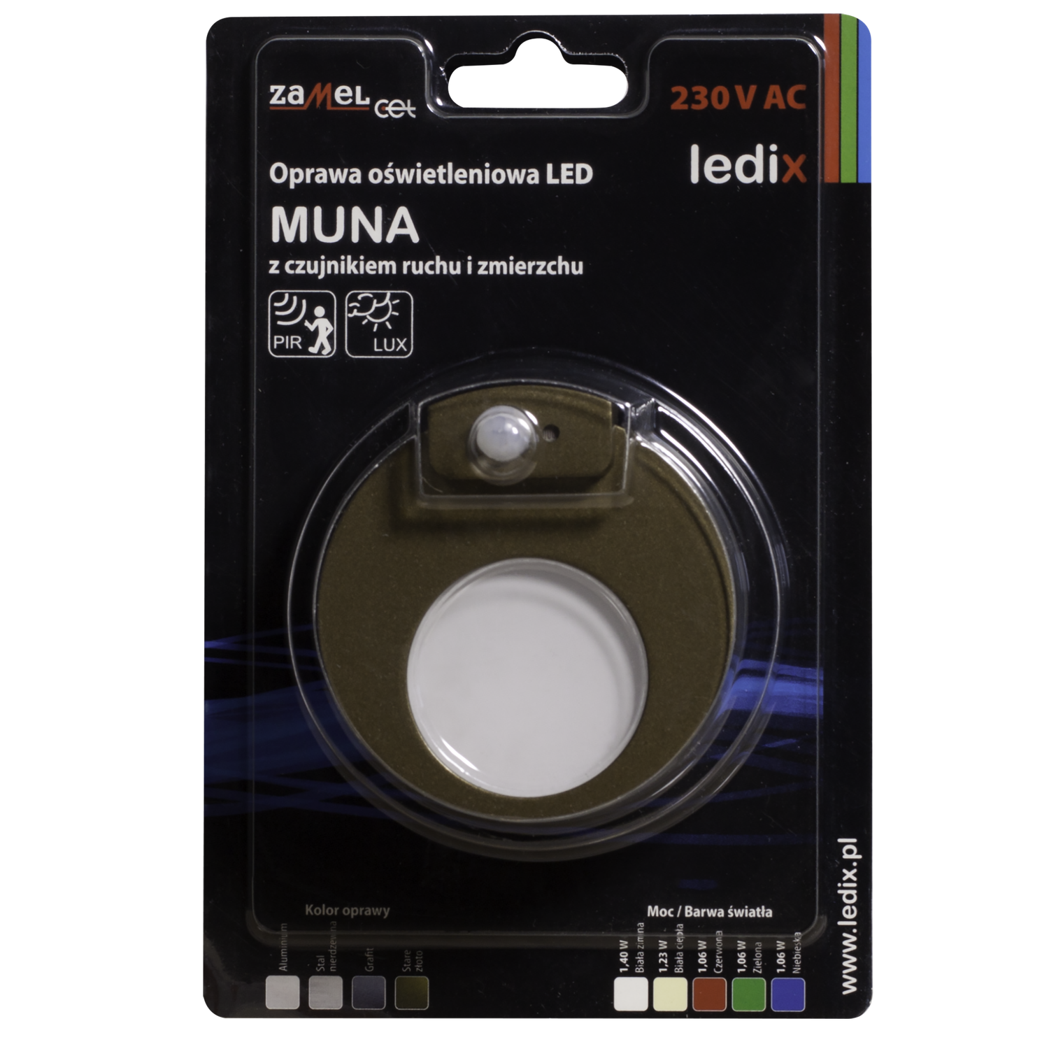 Oprawa Led Muna Pt 230v Ac Czujnik Zlo Biała Zimna Typ: 02-222-41