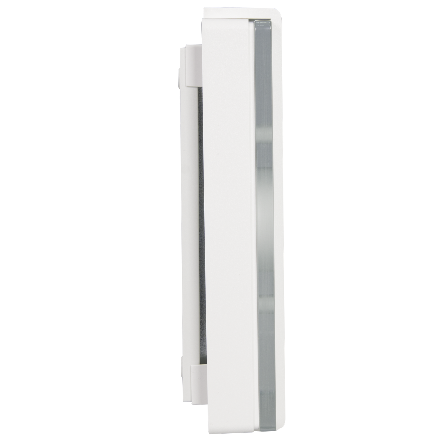 - Kunststoffgehäuse, abgedeckt mit gehärtetes Glass (8 mm) und silberfarbener oder weisser Deko-Platte