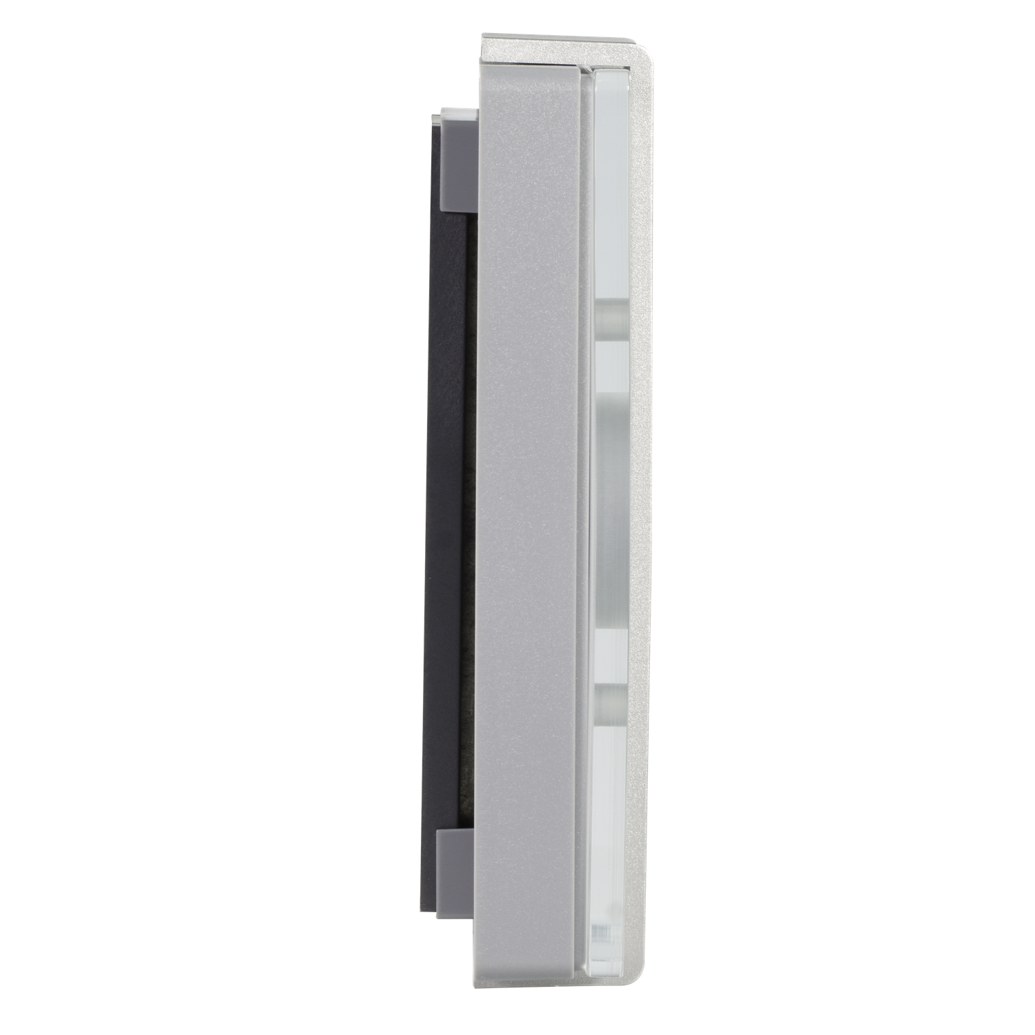 - Kunststoffgehäuse, abgedeckt mit gehärtetes Glass (8 mm) und silberfarbener oder weisser Deko-Platte